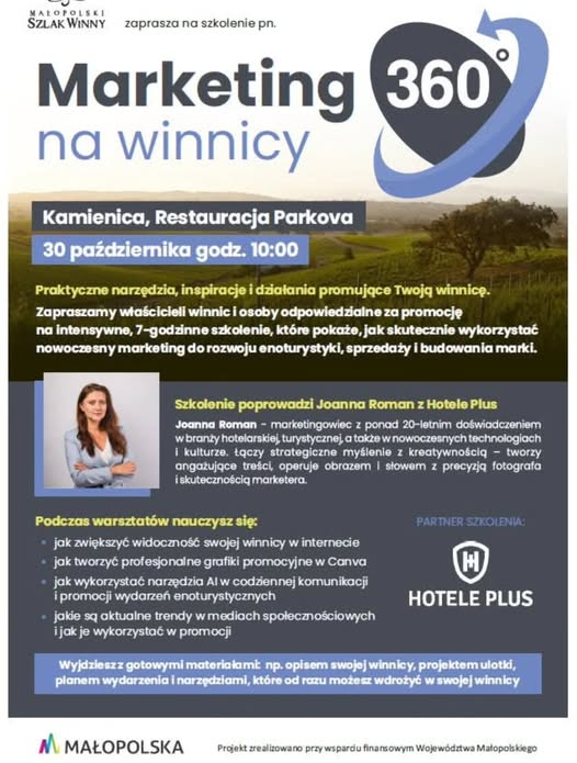 na intensywne, 7-godzinne szkolenie, które pokaże, jak skutecznie wykorzystać nowoczesny marketing do rozwoju enoturystyki, sprzedaży i budowania marki.